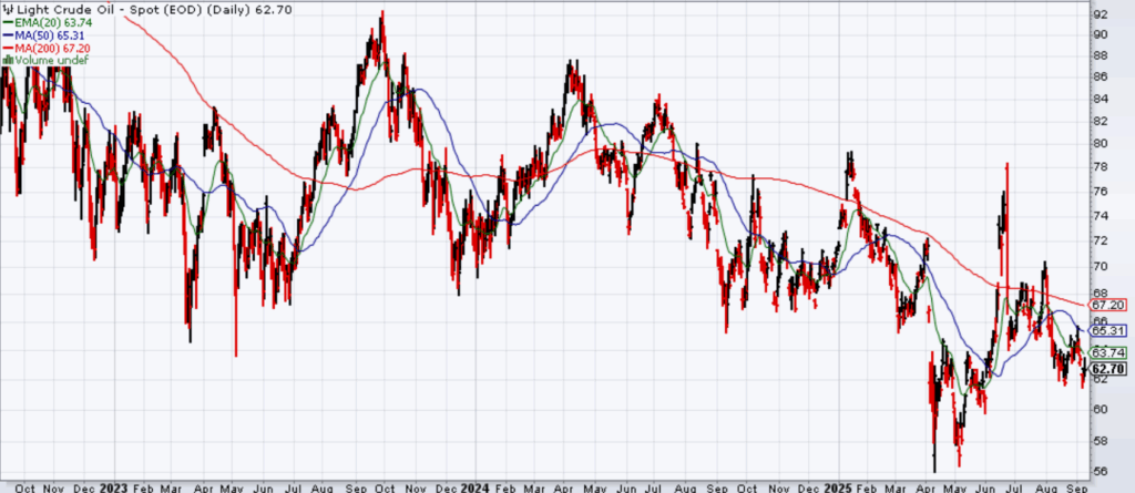 - Commodities (Gold & Oil): I remain slightly bullish on commodities overall and continue to rely on market technicals to guide my outlook. For gold, the breakout above short-term resistance and support from the 200-day moving average keeps me constructive, though I would turn more cautious if prices fall back below these levels. Oil remains range-bound, but with WTI Crude Oil currently near the bottom of its long-term $60–$90 per barrel range, oil could rebound higher within that band. While supply remains ample and demand uncertain, a pickup in global growth or renewed geopolitical tensions could provide additional upside for oil.