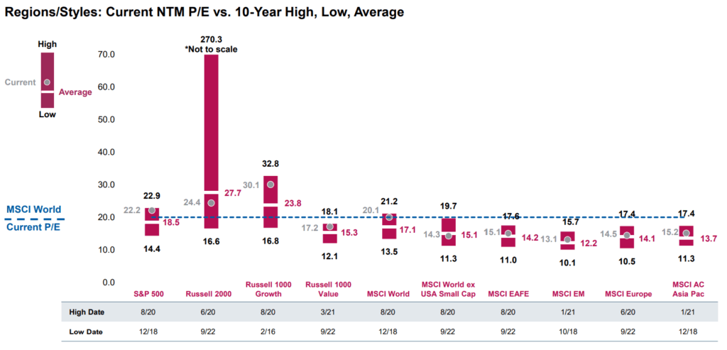 Remember, valuations aren’t the only thing to consider. Earnings growth and the quality of those companies are also very important. A lower valuation company that doesn’t grow might be less attractive than a higher valuation, higher quality company that is growing at a faster rate. Like many things, you sometimes have to pay up for quality. The question for investors is how much of a valuation premium is too much?