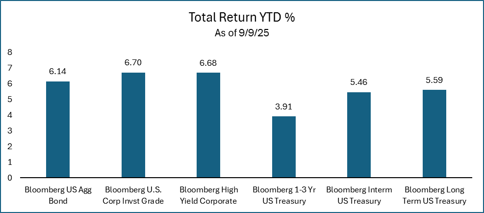 Bonds have performed well this year, with attractive income generation and price appreciation from the yield curve shifting lower and credit spreads tightening. Investors that were willing to take on credit risk and some interest rate exposure have generally outperformed.